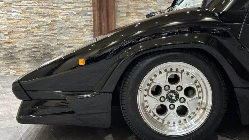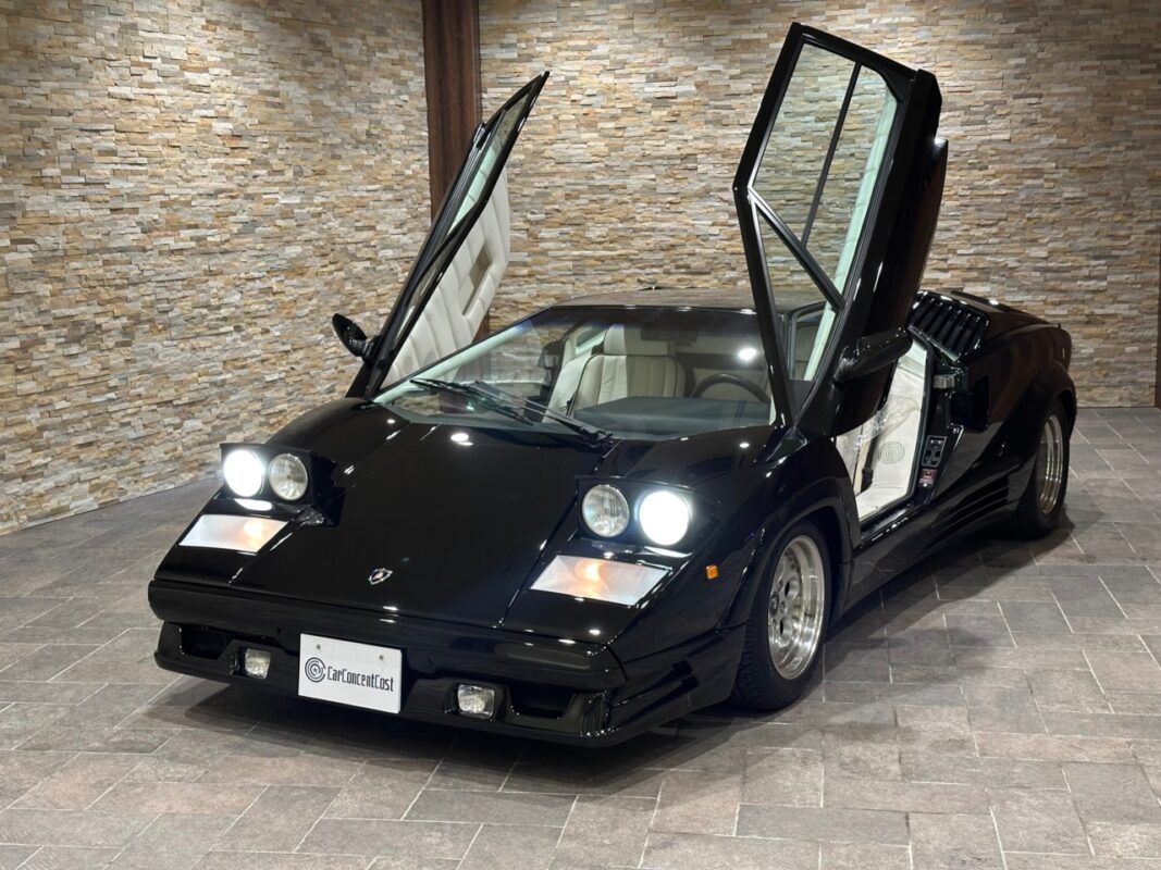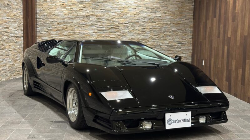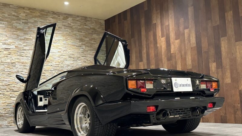 ランボルギーニ カウンタック5.2 V12 応談 カウンタック アニバーサリーは、1988年から1990年までの間に、カウンタックのモデル中で最多となる657台が生産されました。 個性的なサイドシルやエアインテークなど、アニバーサリーに独自のディテールをデザインしたのは、現在ではパガーニ・アウトモビリ社を率いるオラチオ・パガーニ。インテリアはLP5000 QVの基本デザインを継承していますが、その使い勝手の良さや快適性、装備レベルなどは各部に強く表れています。 外装ブラックに内装ホワイトのカウンタックは小売りでこの一台のみ。 外装ブラック自体もこの個体併せて3台のみと希少