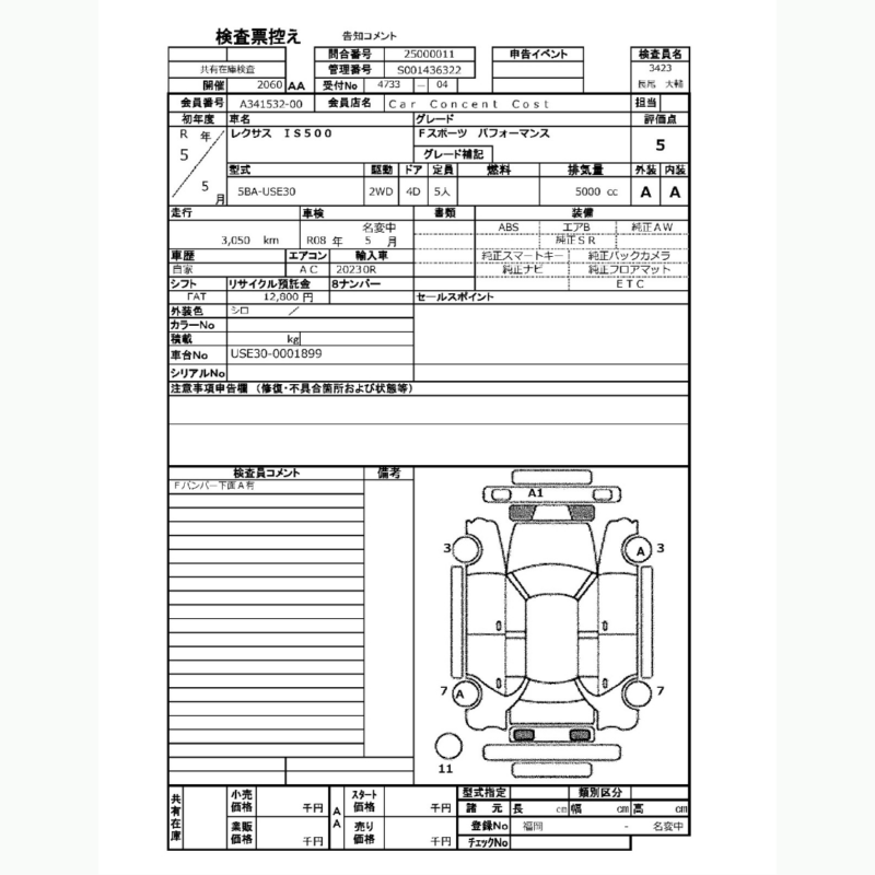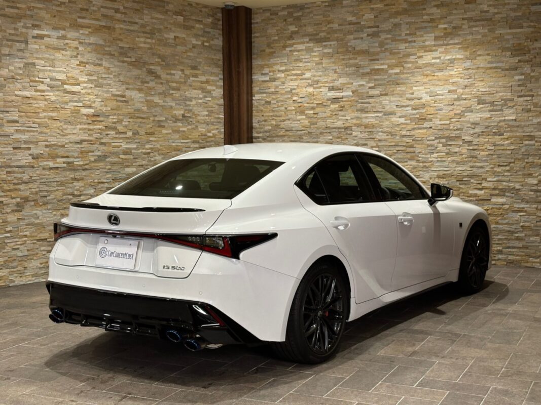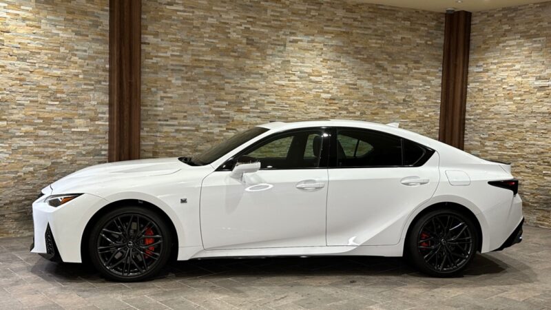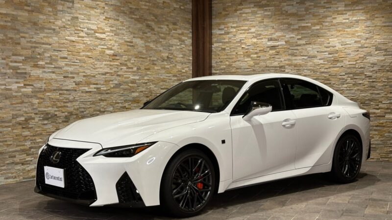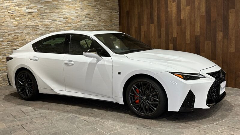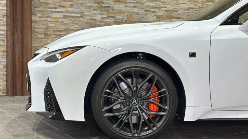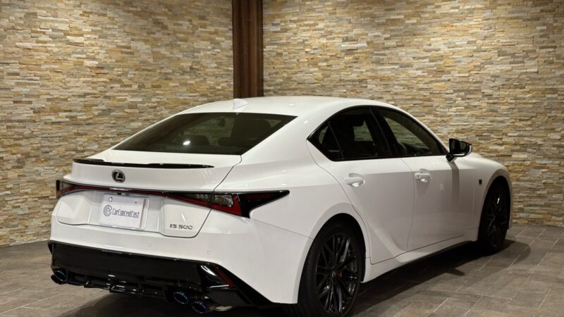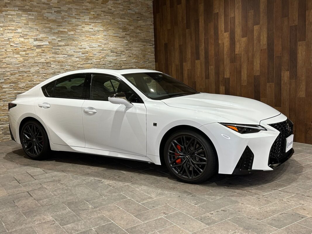 レクサスIS 500Fスポーツ パフォーマンス 保証付き (2026年月5まで / 距離無制限) パフォーマンスのホワイト色の中で小売りの中では最も低走行な一台。1オーナー雨天走行無し。TOMsマフラーを装備(レクサス小倉にて)366,000円。【メーカーオプション】“F SPORT”専用オレンジブレーキキャリパー(フロントLEXUSロゴ)・マークレビンソン プレミアムサラウンドサウンドシステム・ムーンルーフ・ウルトラスエード 【付属品】ナンバーロックボルトロゴ入り・ホイールロックボルトブラック・ハブボルトキャップブラックホイールロックボルト・ナンバーフレームフロントリヤセット・ATオイルクーラー・LEXUSブレーキパッドスポーツタイプ/フロント・ボデーコートプレミアム・スカッフイルミネーション・360°+リヤTZドライブレコーダー・フロアマット・LEDバルブセット・カップホルダープレート・プロジェクションカーテンイルミ