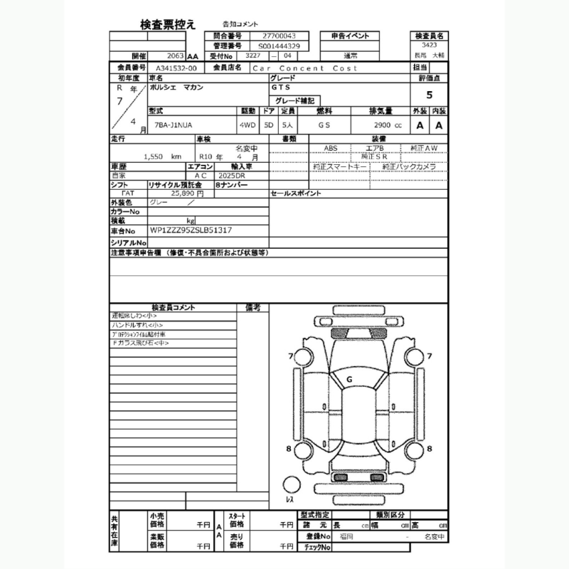 ポルシェマカン GTS PDK 4WD 保証付き (2028年月4まで / 距離無制限) オプション:【エクステリアカラー】 クレヨン 434,000円【デカール】 ”PORSCHE” ロゴ(マットブラック塗装)及びテールゲートモデルバッジ(ハイグロスブラック塗装) 0円・サイドブレードのモデル名ロゴ(レッド)40,000円【ホイール】 21インチ GT Design ホイール(ハイグロスブラック塗装)243,000円【ホイールアクセサリ】 盗難防止ホイールボルト 9,000円【ライト&ガラス】 LEDヘッドライト(ティンテッド)、ボルシェダイナミックライトシステム プラス(PDLS Plus)を含む 68,000円・プライバシーガラス 71,000円【エクステリアパッケージ】 エクステリア パッケージ(エクステリア同色/ハイグロスブラック塗装)115,000円【エクステリア】 ドアリリースレバー(ハイグロスブラック塗装)36,000円・”PORSCHE” ロゴLED ドアカーテシーライト 43,000円・Exclusive Design フューエルキャップ 20,000円【インテリアカラー&マテリアル】 GTS インテリア パッケージ(クレヨン)573,000円【シート】 アダプティブ スポーツシート(フロント18Way 電動調節)191.000円【パッケージオプション】 RHD 仕様 0円【ルーフ&トランスポートシステム】 パノラマ ルーフ システム 247,000 円 【ドライブトレイン&シャシー】 7速ポルシェ ドッペルクップルング(PDK)0円・ポルシェアクティブ サスペンションマネジメントシステム(PASM)を含む、アダプティブエアサスペンション 0円・パワーステアリングプラス 40,000円【インテリアパッケージ&インテリアマテリアル】 カーボンインテリアパッケージ 127,000円・ダッシュボードトリムパッケージ(レザー)、カラーステッチ付きクレヨン 186,000 円【ステアリングホイール&ギアセレクター】 マルチファンクションGT スポーツステアリングホイール(ヒーター及びカーボンインレイ付き Race-Tex リム)246,000円・電動ステアリングコラム調節機能 29,000円・カーポン PDK レバー(Race-Tex ギアセレクターノブ付き)81,000円【インテリア】 メーターパネル(シルバー)0円・ルーフライニング(Race-Tex) 197,000円・イリュミネイテッドドアシルガード(カーボン)、ローディングエッジプロテクションを含む 152,000円【インフォテイメント】 BOSE® サラウンドサウンドシステム 177,000円。オプション合計 3,325,000円