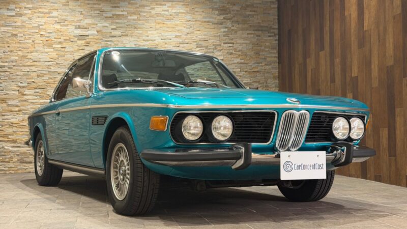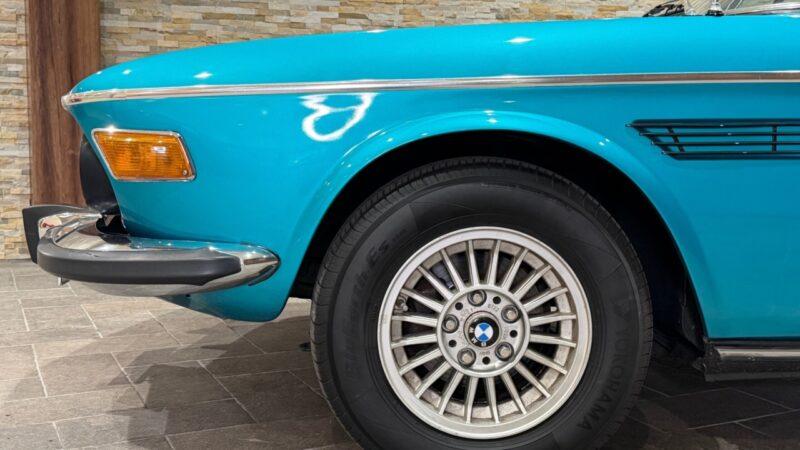 BMW 3.0CSi E9 turkis metallicというBMWのカラーリングを模して全塗装。 前オーナー様が2022年~2025年に約200万円(そのうち約50万円が全塗装)かけて整備済。インジェクションモデルとなる"3.0CSi"です。 ゼニス・ストロンバーグのツインキャブレターを装備したエンジンだけでも充分な性能を誇っていたCSシリーズに、電子制御式のボッシュ製Dジェトロニックが採用されました。 一見スマートな印象を受ける"3.0CSi"ですが、通称「ビッグシックス」と呼ばれる直列6気筒2985ccエンジンが搭載され、最高速度220km、最高出力210馬力と、キャブレターモデルに対してより向上され、当時としては驚異の数値を記録しています。 AT車ではなく、よりマニア向けである4速のMT車となっており、先代まではリアブレーキがドラムブレーキでしたが、このモデルよりブレーキが4輪ディスクブレーキとなっております。またパワーステアリングも装備されており、現代の交通事情においても不満なくお乗りいただけます。