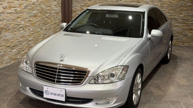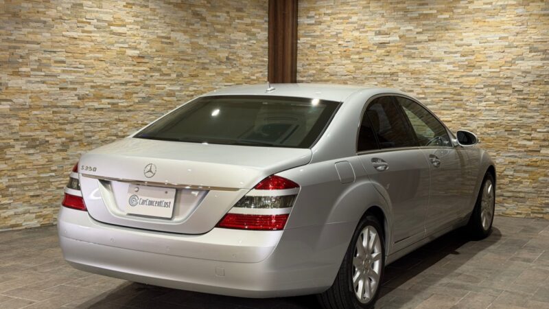 メルセデス・ベンツS350 左H S350は新車価格は当時車体のみで1,050万円。 以前は小売りでかなりの台数が出回っていたW221型のSクラスだが、 S350で全国28台(九州3台)と少なくなっている。 市場ではカスタムされている個体や、室内がタバコ臭がしたり状態が良くない個体も多い中、純正に準じて、良い状態を保っている個体。