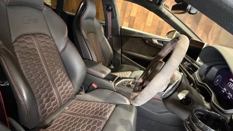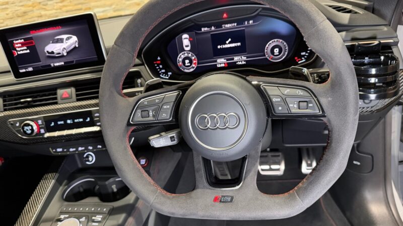 アウディRS5 スポーツバック2.9 4WDRS5スポーツバックは全国23台あり、その中の多くが関東に在庫が集中しており、九州はこの一台のみ。 普段乗りに使えることもあり、2万k~5万kmの個体が多い中極めて低走行。 DRC(ダイナミック・ライド・コントロール)付スポーツサスペンションプラスやリヤアクスル左右の駆動力配分を最適化するスポーツディファレンシャルを標準装備とすることで大パワーを確実に路面に伝達し、優れた高速安定性と操縦安定性を実現しています。 また、アウディ独自の燃焼方式であるBサイクルの採用により、優れた走行性能と燃費性能を両立しているのが特徴。 【オプション】 ・外装 ・カーボンスタイルパッケージ ・5アームフラッグデザインホイール ・内装 ・RSデザインパッケージレッド ・デコラティブパネルカーボン ・BANG&OLUFSENサウンドシステム ・ガラスサンルーフ