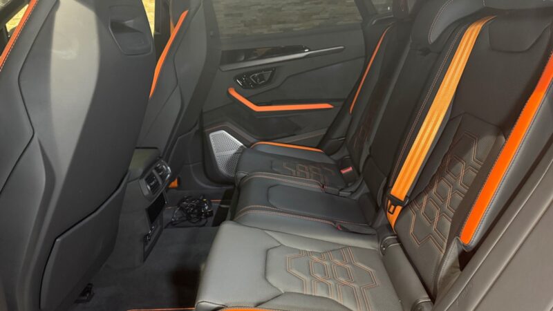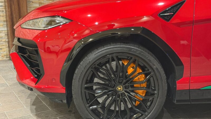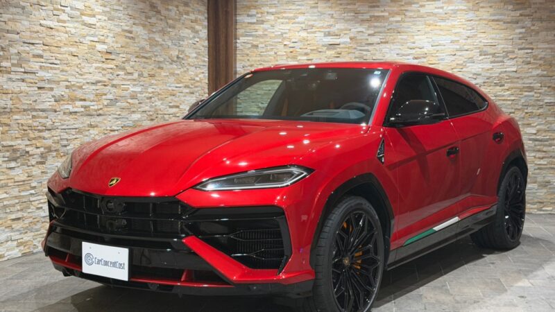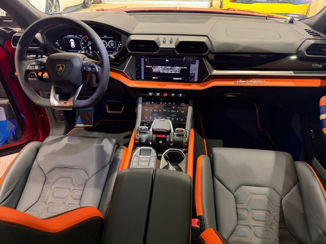 ランボルギーニ ウルス SE 4WD 左H 【オプション】ボディカラー• Rosso Efesto(ロッソ・エフェスト)、エクステリア• パノラマルーフ• スタイルパッケージ(ハイグロスブラック)• ブラックマット エキゾーストテールパイプ• ボディ同色 フロントスプリッター• シャイニーブラック リアスポイラー• シャイニーブラック サイドミラー• シャイニーブラック ドアハンドル、ホイール・ブレーキ• 23インチ Galanthus アルミホイール(シャイニーブラック)• オレンジ ブレーキキャリパー、インテリア• Sportiva レザーインテリア(スペシャルトリム)• Nero Ade(ブラック)• Arancia Apodis(オレンジ)• コントラストカラー仕上げ• バイカラー(ベースカラー/コントラストカラー)• コントラストカラーステッチ• ステッチオプション、ステアリング• コルサテックス マルチファンクションステアリング(ヒーター付)• ステアリング ステッチオプション、内装装備• レザーパイピング&ダブルステッチ フロアマット• バイカラーインテリア(ベース/コントラスト)• Arancio Leonis(オレンジ)シートベルト、シート• フル電動フロントシート(ベンチレーション&マッサージ付)• リアシートヒーター、トリム・演出• カーボンファイバー キックプレート(シャイニー)• ヘッドレスト ランボルギーニ刺繍• アンビエントライトパッケージ• Lamborghini ANIMA(オフロードモード付)• クロスステッチオプション• ブラックアルマイト加工(レーザー刻印)、先進装備• ナイトビジョン• TVチューナー• アドバンスド3D Bang & Olufsen サウンドシステム、メーカーオプション3点、ディーラーオプション7点、オプション総額950万円オーバー