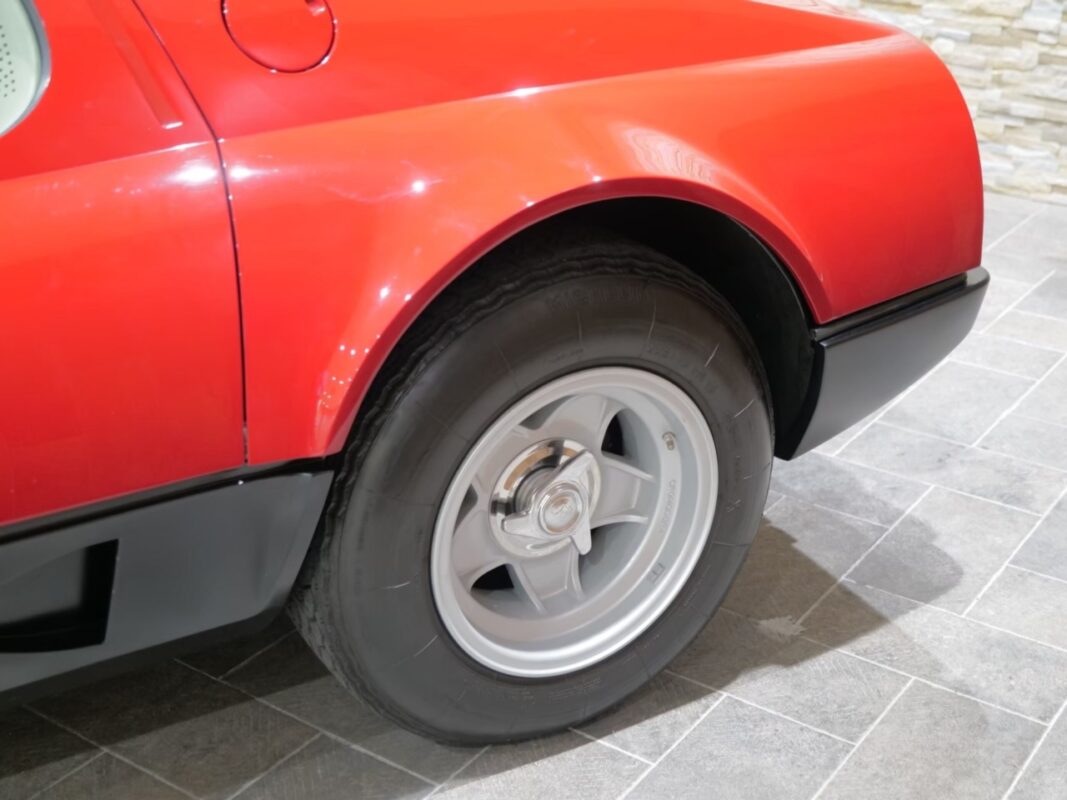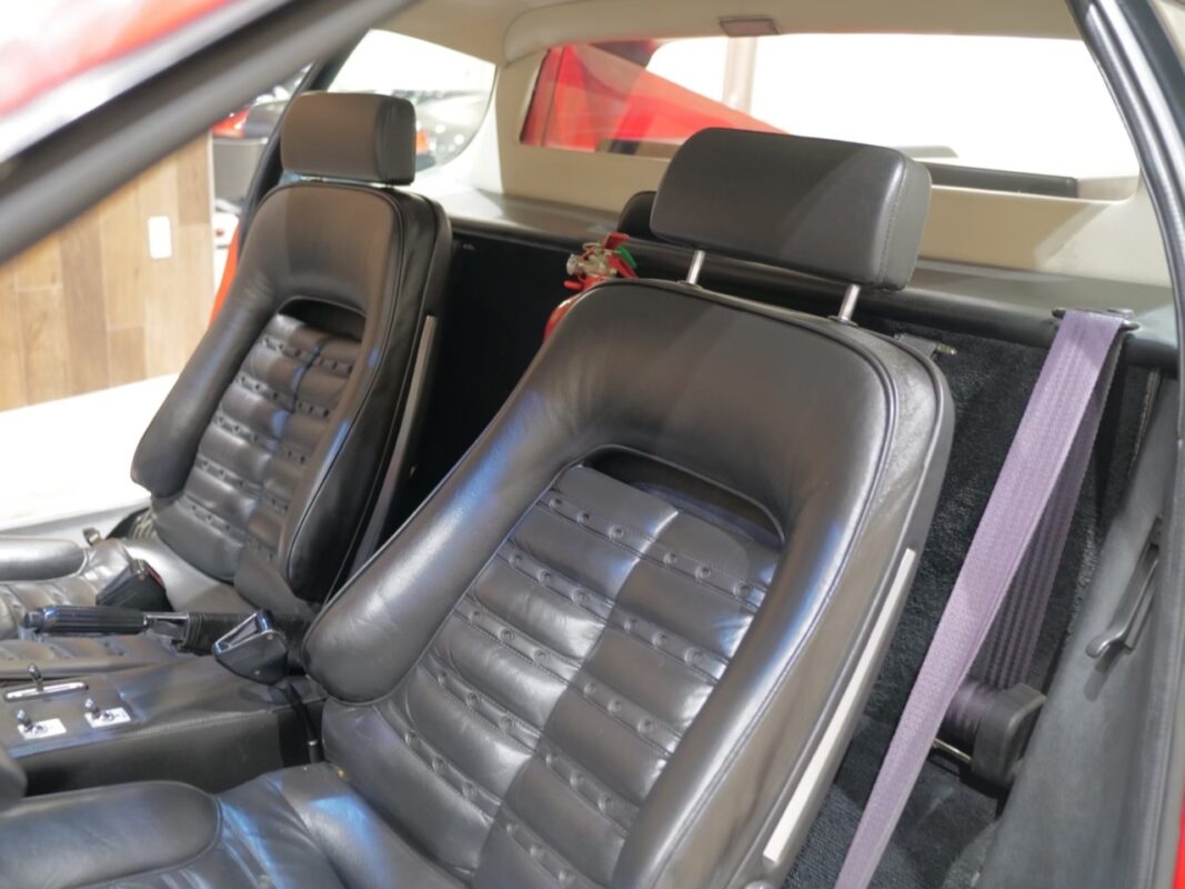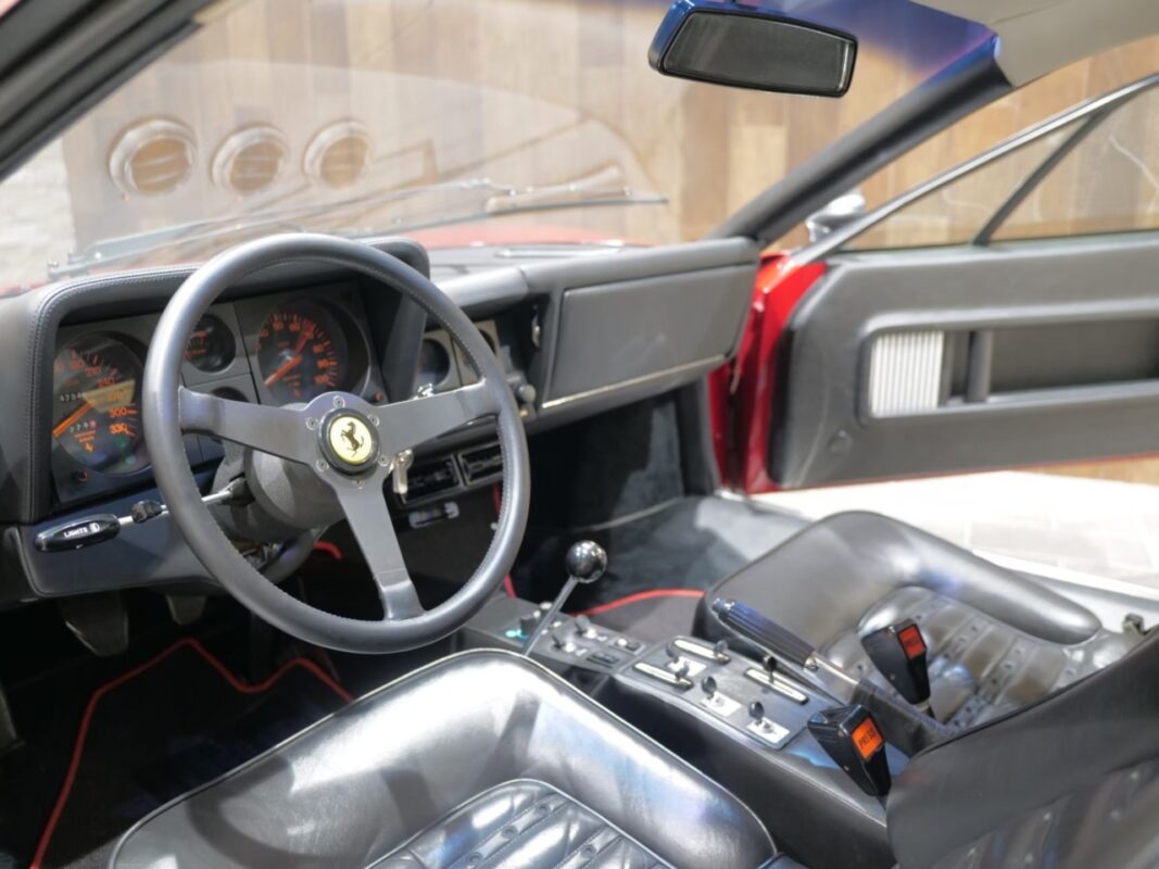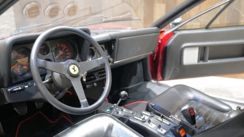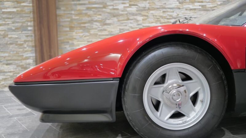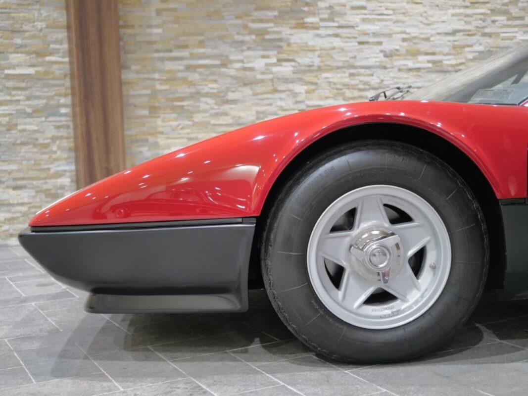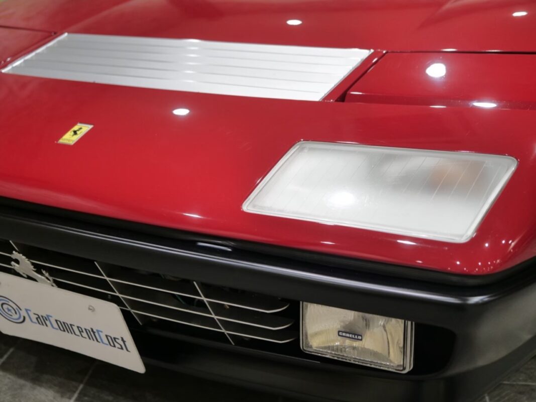 フェラーリ512BB 応談 イタリアで新車デリバリー後、1980年代初頭に米国へ輸出された初期キャブレターモデル。ロッソコルサにリペイント済みで、オリジナルのブラックレザー(デイトナシート)を保持した保存状態良好な個体です。 5.0Lフラット12エンジン+5速MTを搭載し、1995年にレストアおよび全塗装、2014年にタイミングベルト交換含むフルサービスを実施。 3オーナー履歴、オリジナルブック、ツールキット、スペアタイヤ付属。