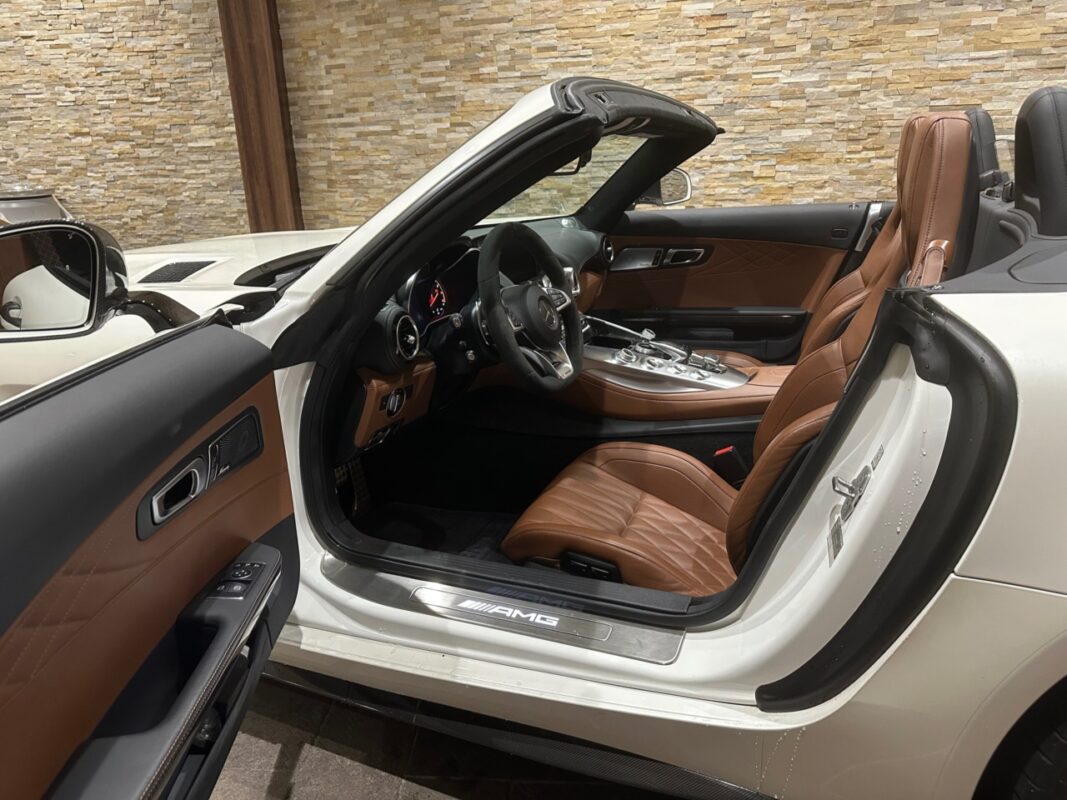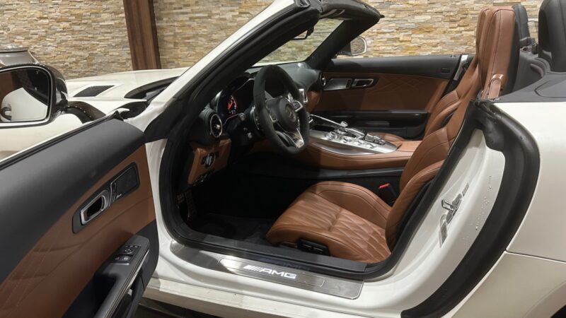 メルセデスAMG GT Cロードスター 4.0 左H GTCロードスターはこの個体含め全国に8台と大変希少な車種。 外装ホワイト、内装ブラウンになるとこの1台のみ。 希少なこともありこの価格帯からは値崩れ幅も低く資産価値も高い一台。