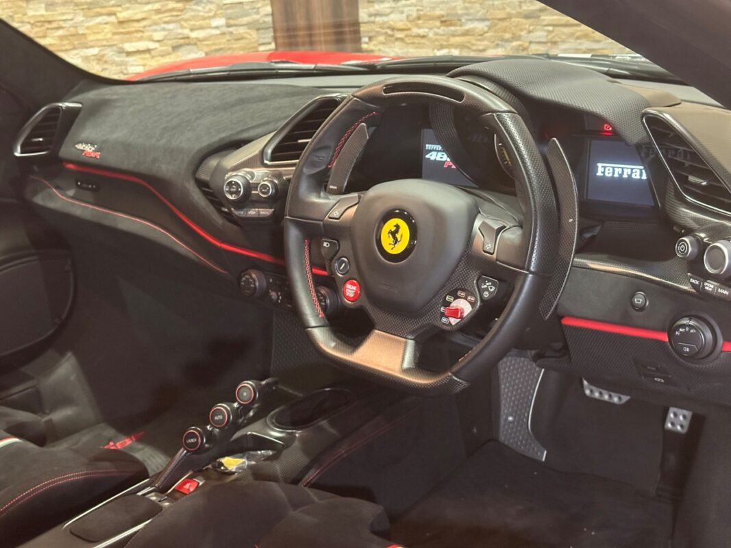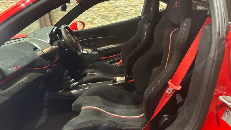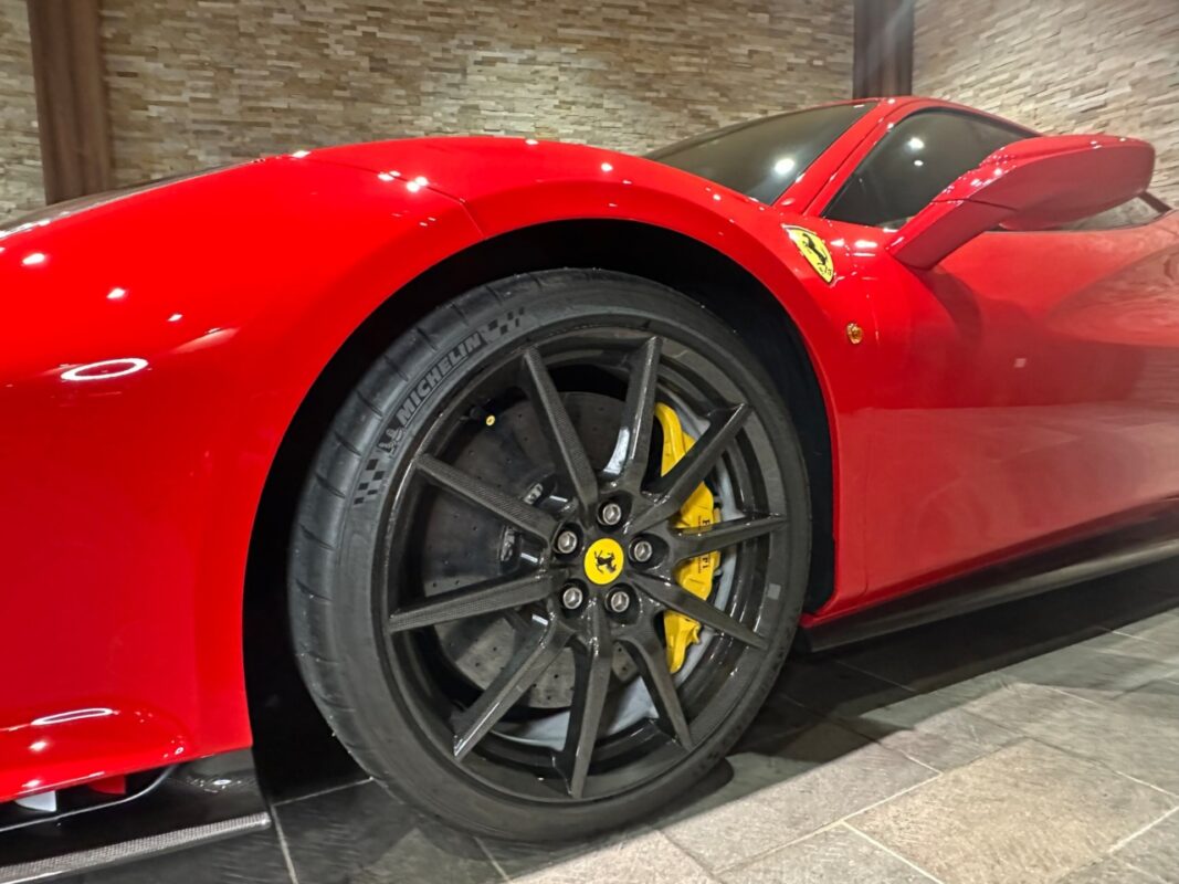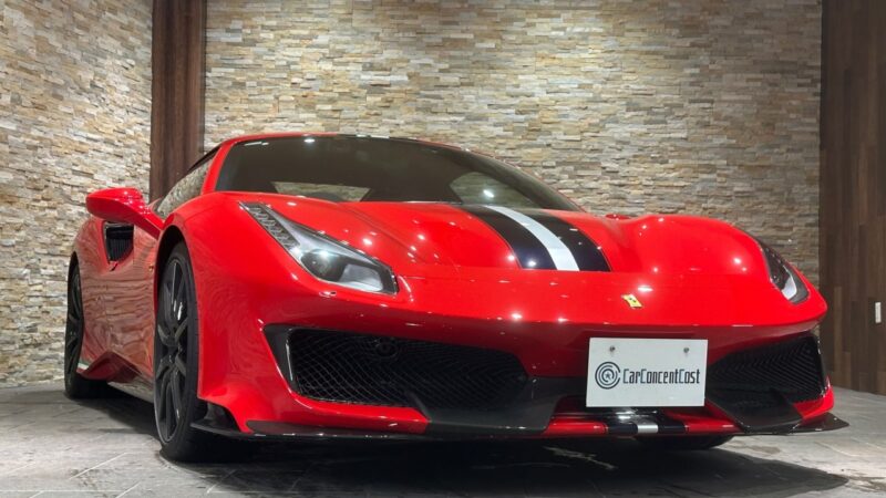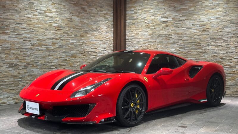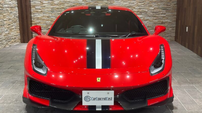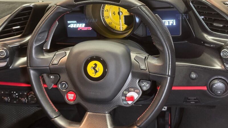 フェラーリ488ピスタ リヴリア・アルジェント・ニュルブルリンク・ブルー・アメリカ 応談。 【オプション】アダプティブ・フロントライトシステム、イエローブレーキキャリパー、カーボンファイバー製フロントフラップ、カーボンファイバー製サイドエアスプリッター、カーボンファイバー製エンジンカバー、カーボンファイバー製リアディフューザー、カーボンファイバー製フロントエアベント、カーボンファイバー製アンダードアカバー、カーボンファイバー製メーターフード、マット仕上げカーボンファイバーインテリアパーツ、カーボンファイバー製インナーシルトリム、カーボンファイバー製アッパーセンターコンソールトリム、インテリアカラーディテール(ロッソフェラーリレザー)、カラードシートベルト(レッド)、フロントサスペンションリフター、チタンエキゾーストパイプ、ロゴ入りカラーフロアマット、カーボンファイバー製リアモールディング、HELEシステム(燃費・排出ガス低減システム)、メトリック表示メーター(km/h等)、スクーデリア・フェラーリエンブレム(フェンダー)、内外自動防眩ミラー、パーキングカメラ、ツートーンストライプ(ブルーアメリカ)、カーボンファイバーホイール、イエローレブカウンター、カーボンファイバーレーシングシート(ミディアムサイズ)、レーシングシートリフター、統合オーディオシステム、スペシャル装備カラーステッチ(ロッソ)、特別装備シート中央トリコロールレザーストライプ。
