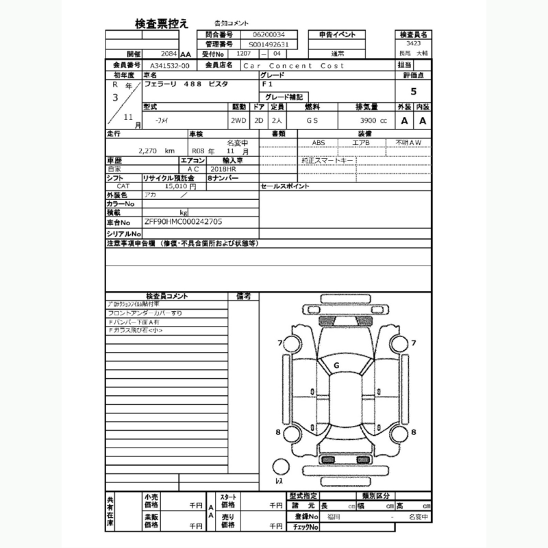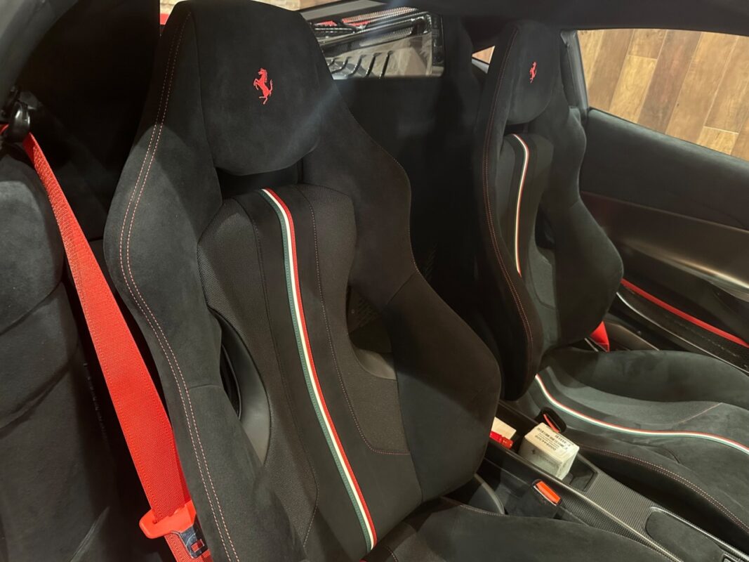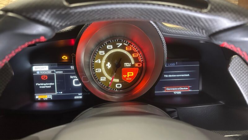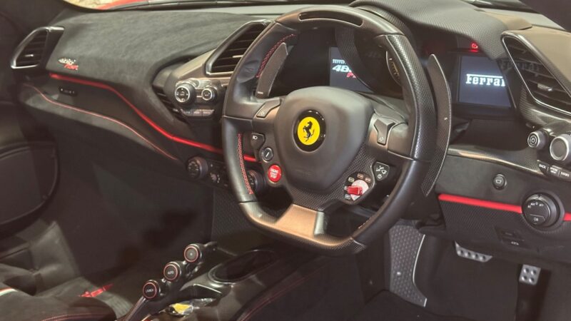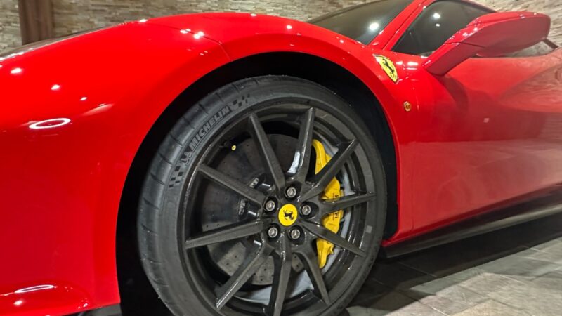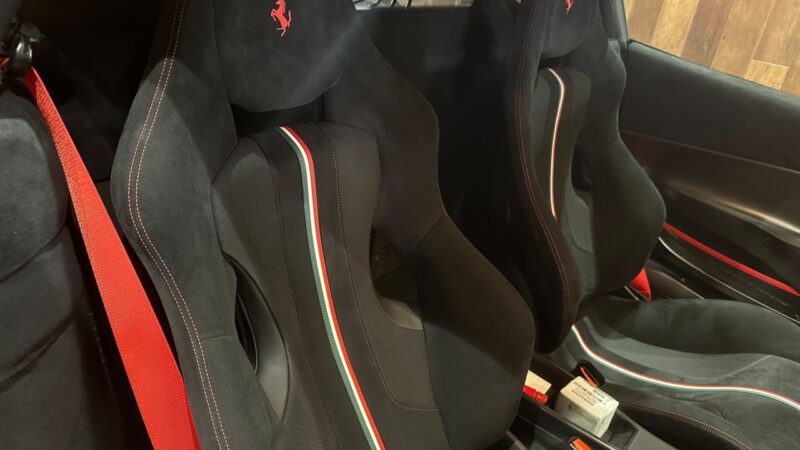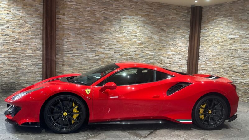 フェラーリ488ピスタ リヴリア・アルジェント・ニュルブルリンク・ブルー・アメリカ 応談。 【オプション】アダプティブ・フロントライトシステム、イエローブレーキキャリパー、カーボンファイバー製フロントフラップ、カーボンファイバー製サイドエアスプリッター、カーボンファイバー製エンジンカバー、カーボンファイバー製リアディフューザー、カーボンファイバー製フロントエアベント、カーボンファイバー製アンダードアカバー、カーボンファイバー製メーターフード、マット仕上げカーボンファイバーインテリアパーツ、カーボンファイバー製インナーシルトリム、カーボンファイバー製アッパーセンターコンソールトリム、インテリアカラーディテール(ロッソフェラーリレザー)、カラードシートベルト(レッド)、フロントサスペンションリフター、チタンエキゾーストパイプ、ロゴ入りカラーフロアマット、カーボンファイバー製リアモールディング、HELEシステム(燃費・排出ガス低減システム)、メトリック表示メーター(km/h等)、スクーデリア・フェラーリエンブレム(フェンダー)、内外自動防眩ミラー、パーキングカメラ、ツートーンストライプ(ブルーアメリカ)、カーボンファイバーホイール、イエローレブカウンター、カーボンファイバーレーシングシート(ミディアムサイズ)、レーシングシートリフター、統合オーディオシステム、スペシャル装備カラーステッチ(ロッソ)、特別装備シート中央トリコロールレザーストライプ。