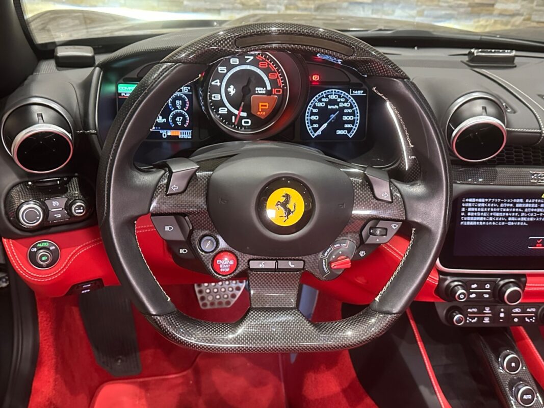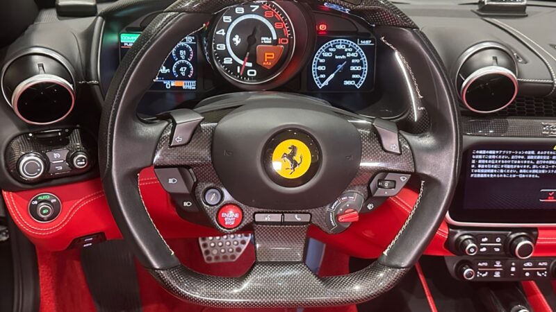 フェラーリポルトフィーノ このカラーリングのポルトフィーノは小売りで1台のみ。 ポルトフィーノの中ではOPが充実(平均15~17に対し、この個体は21項目) オプション ・レッドブレーキキャリパー ・クロームエッジ付きフロントグリル ・スクーデリア・フェラーリエンブレム(フェンダー) ・20インチ鍛造ダイヤモンドホイール ・カーボンファイバー製リアエアダクト ・ブラックテールパイプ ・カーボンファイバー製ドライバーゾーン+LED ・カーボンファイバー製センターブリッジ ・カーボンファイバー製カップホルダー ・カーボンファイバー製ホイールセンターキャップ ・カーボンファイバー製ダッシュインサート ・ヘッドレストに跳ね馬ロゴ刺繍(グリジオキアーロ) ・ロゴ入りカラーフロアマット ・HELEシステム(燃費・排出ガス低減システム) ・マグネライド・デュアルモードサスペンション ・自動防眩ルームミラー ・パーキングカメラ ・フル電動シート ・リアシートバックレスト可倒式 ・キルティングスタイルシート ・カラーステッチ(グリジオキアーロ)